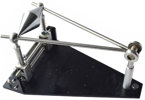 3、三維可調(diào)性強:錐體兩軌(guǐ)道夾角可調(diào)、軌(guǐ)道平面傾角可調(diào),以及可選用各種不同尺寸(直徑和高度)的錐體做實驗;