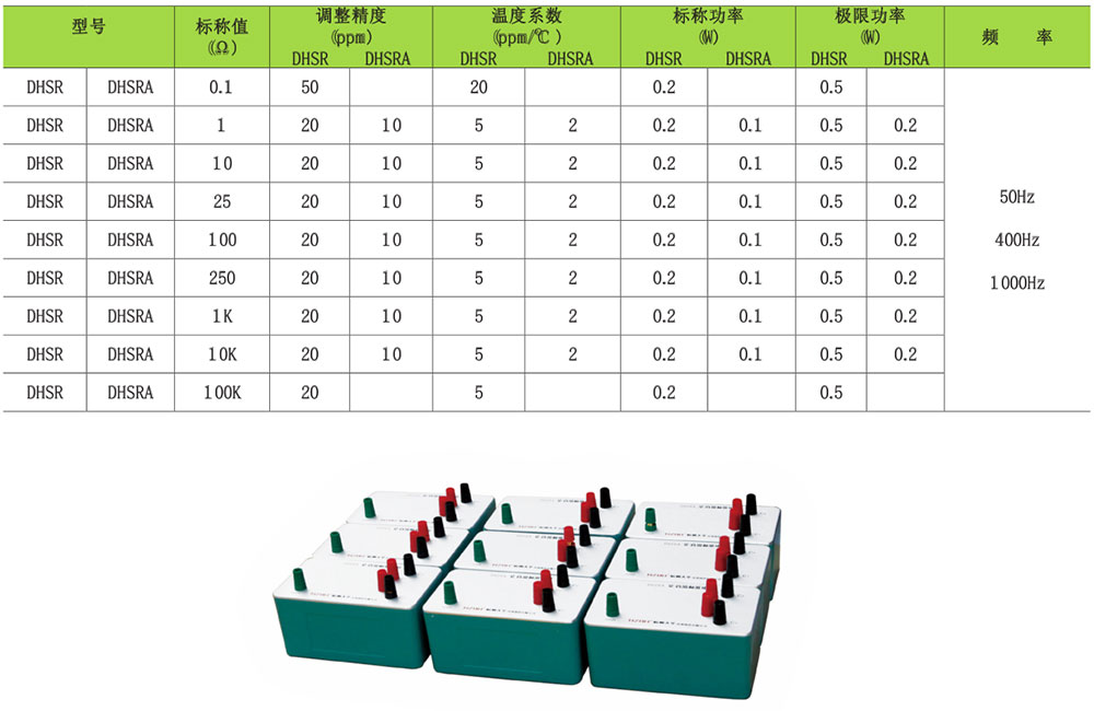 DHSR 系列标準電阻是高準確(què)度校正實驗室作交直流電阻值的量傳标準,同時适合於(yú)多功能校準器和高準確(què)度數字電壓表(DVM)的電阻量程的校準。